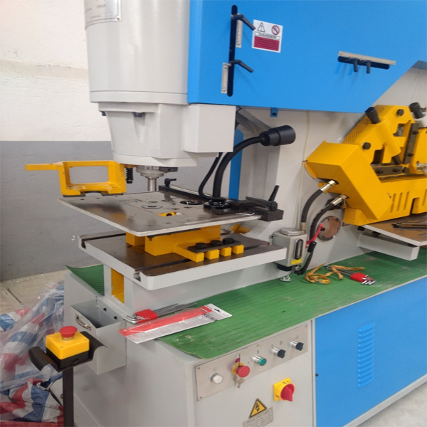 | Procesos: Cizalla - punzonadora de 2 cilindros hidráulicos independientes, 2 puestos y 5 estaciones de trabajo: Punzonado (550 kN de potencia) Entallado Cizallado de perfiles L (1100 kN de potencia) Corte de Soleras Corte redondos, cuadrados y perfiles | ||